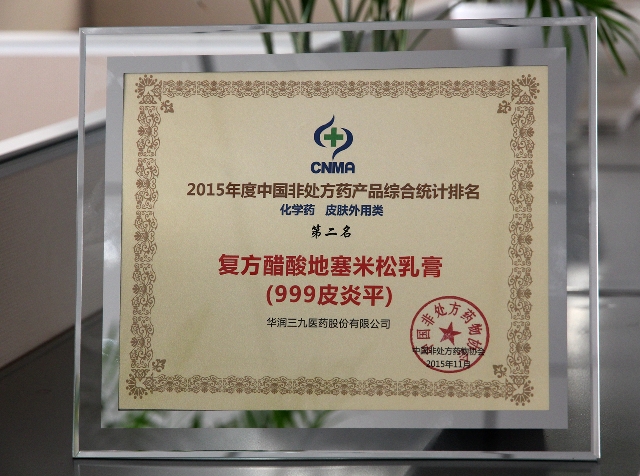 根据此次发布的获奖名单,在生产企业综合统计排名方面,太阳成集团tyc122cc荣获企业综合榜第一名;在非处方药产品统计排名方面,999感冒灵获中成药感冒咳嗽类第一名,999皮炎平获化药皮肤外用类第二名,正天丸获中成药头痛失眠类第二名,三九胃泰获中成药消化类第四名,骨通贴膏获中成药外用类第四名,999小儿感冒颗粒获中成药儿科类第三名,999小儿氨酚黄那敏颗粒获化药儿科类第四名。 (曾福)