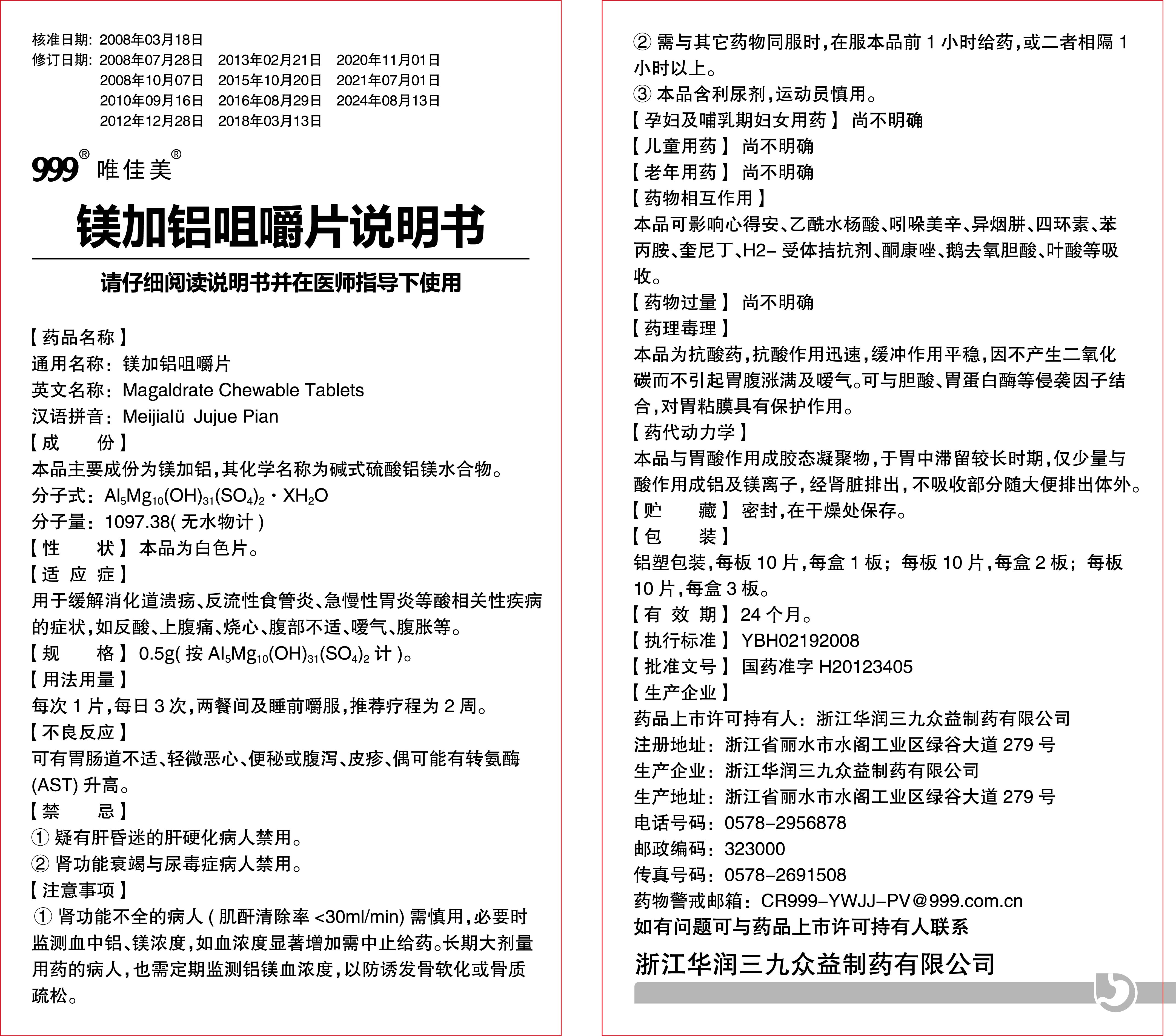镁加铝咀嚼片说明书